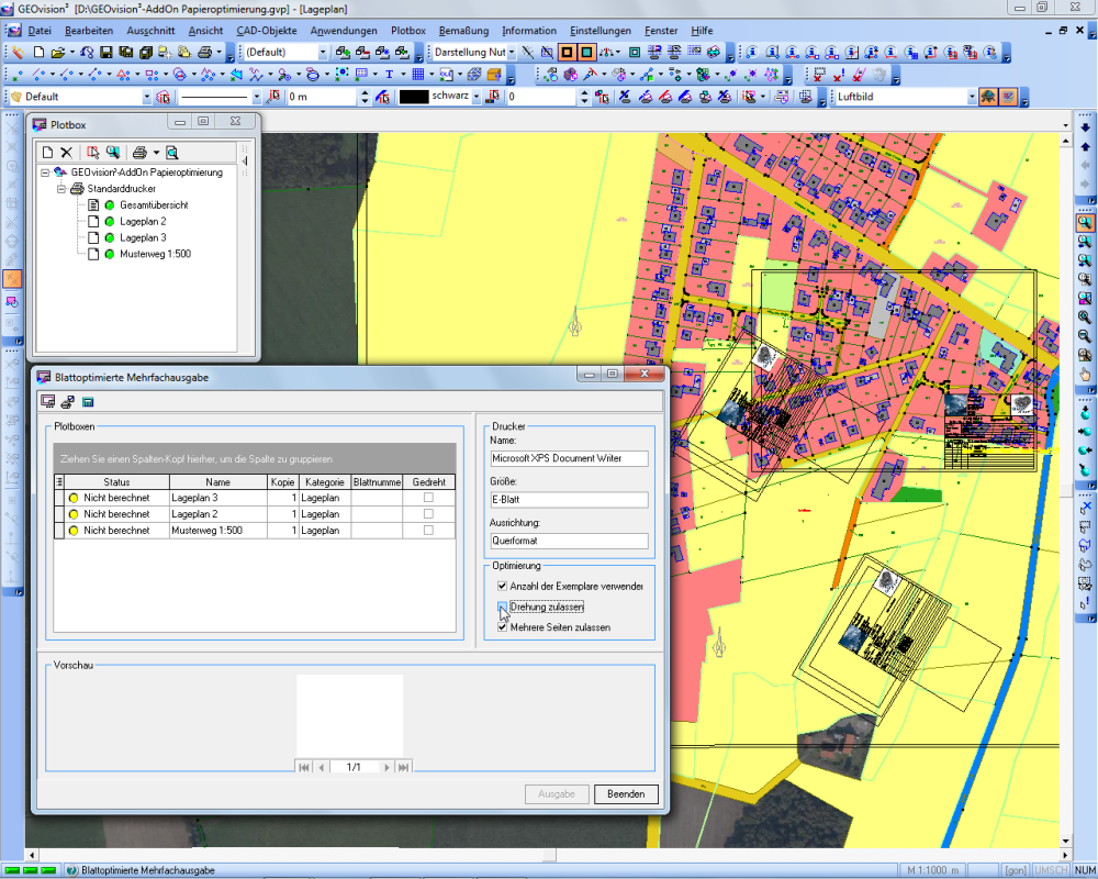 - Vorschau zur Beurteilung der Blattoptimierung der gewählten Plotboxen